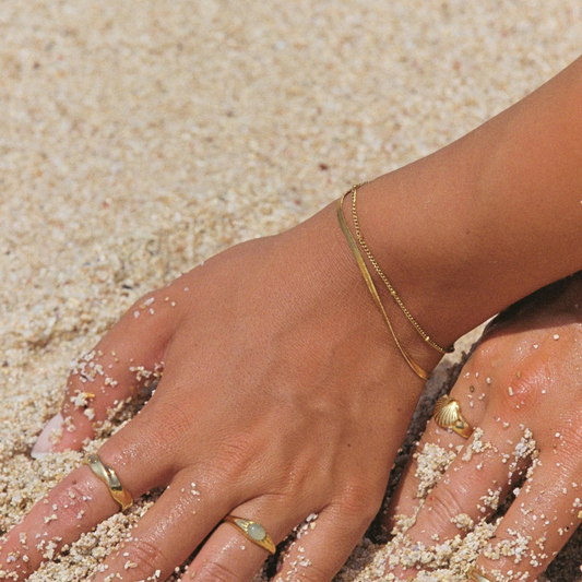 Tan linda como el collar, el diseño es novedoso fusionando dos cadenas diferentes, es muy original y como todas las joyas de Nima, el tono es perfecto.