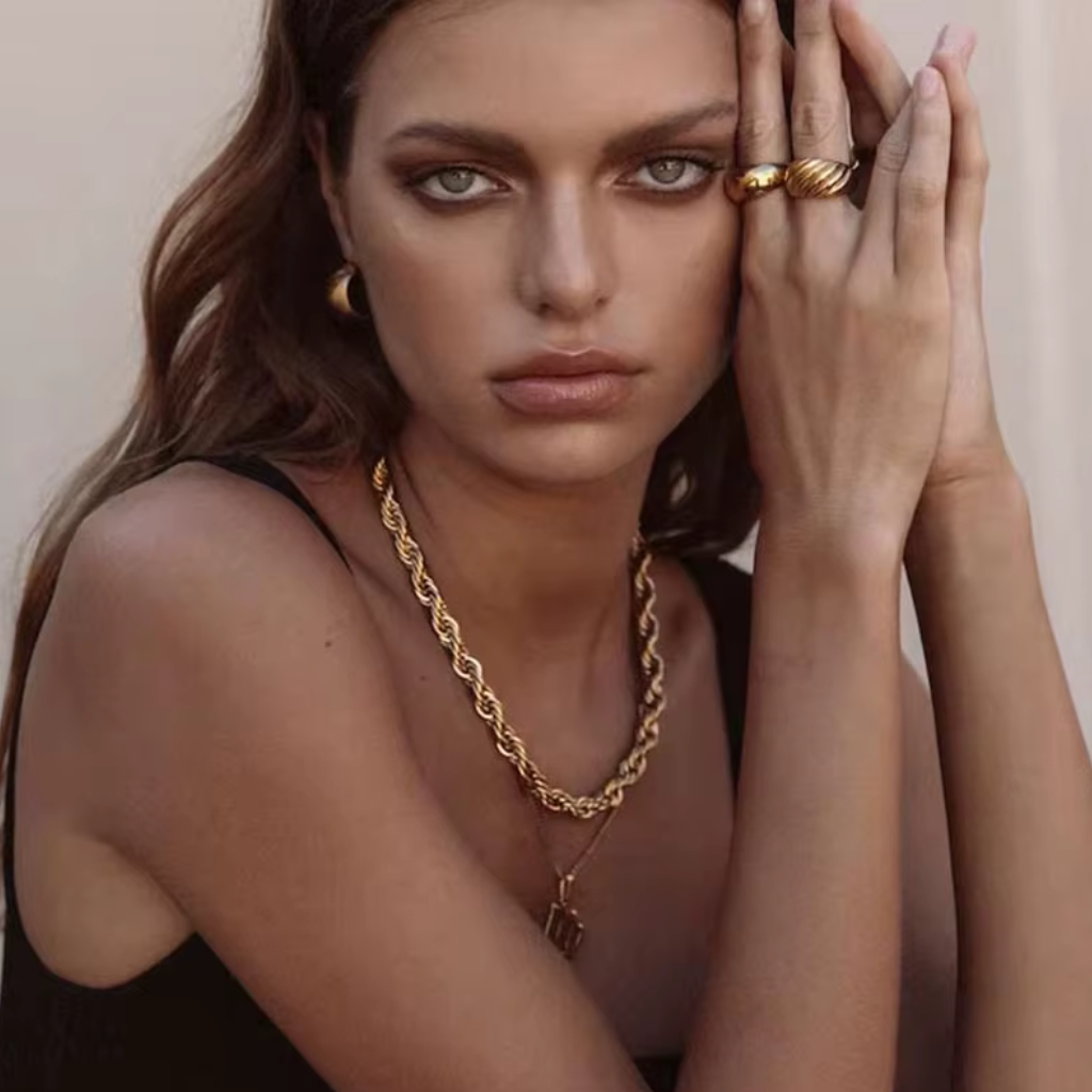Hechas con acero quirúrgico de alta calidad, nuestras joyas están recubiertas con oro de 18k mediante un moderno proceso PVD (Physical Vapor Deposition) que garantiza un acabado duradero, respetuoso con el medio ambiente y diez veces más grueso que el chapado tradicional.