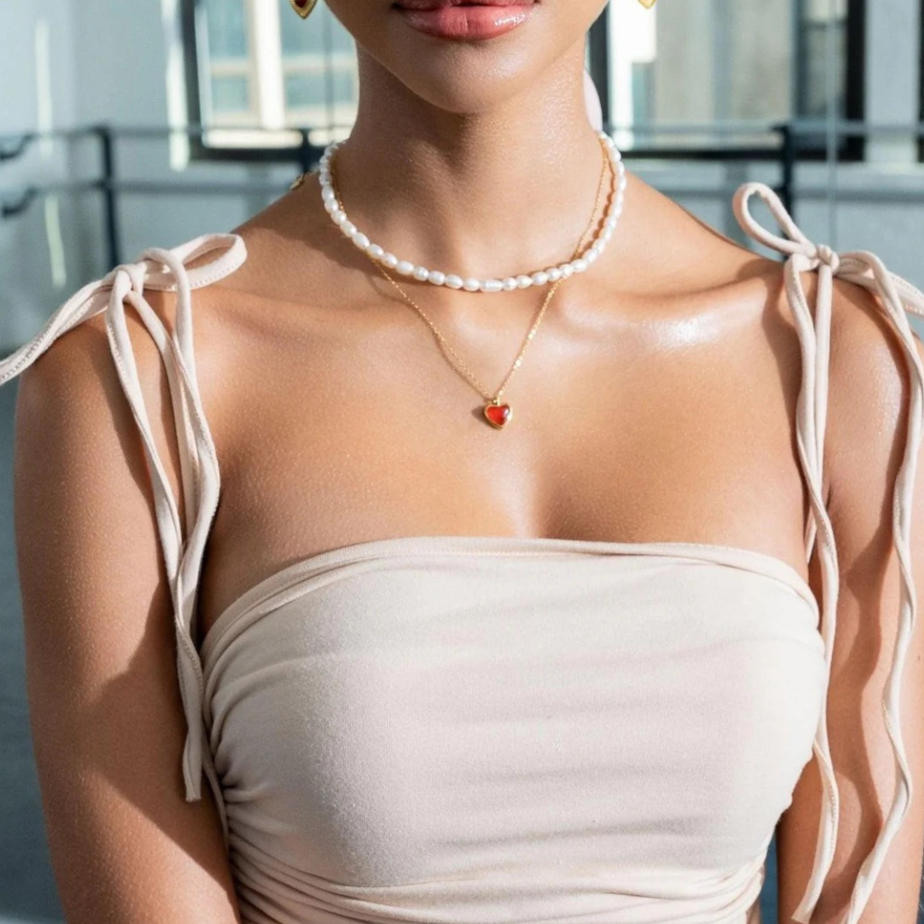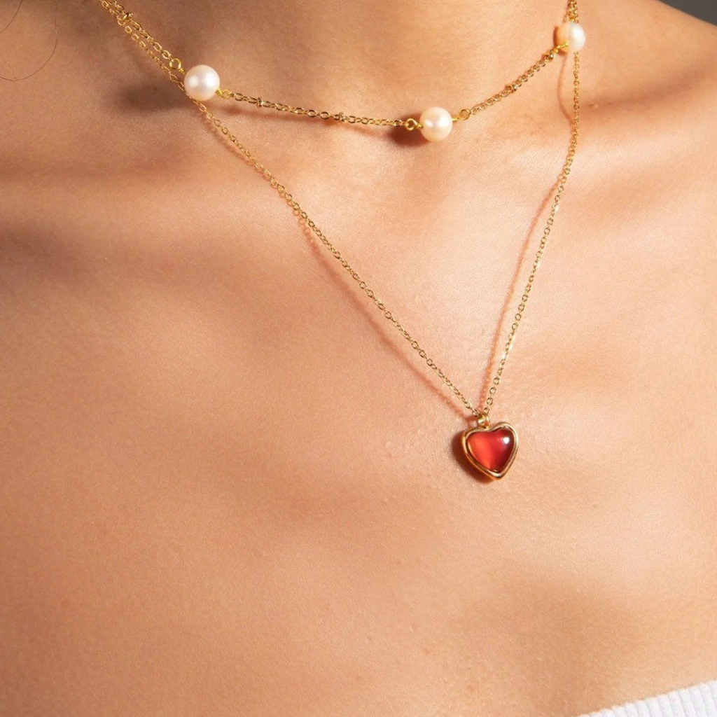 El collar Cupido es la definición perfecta de delicadeza romántica. Un diseño pensado para quienes aman los detalles que cuentan historias: un corazón rojo intenso, luminoso y elegante, que cae justo en el centro del pecho y aporta ese toque dulce, femenino y especial a cualquier look.