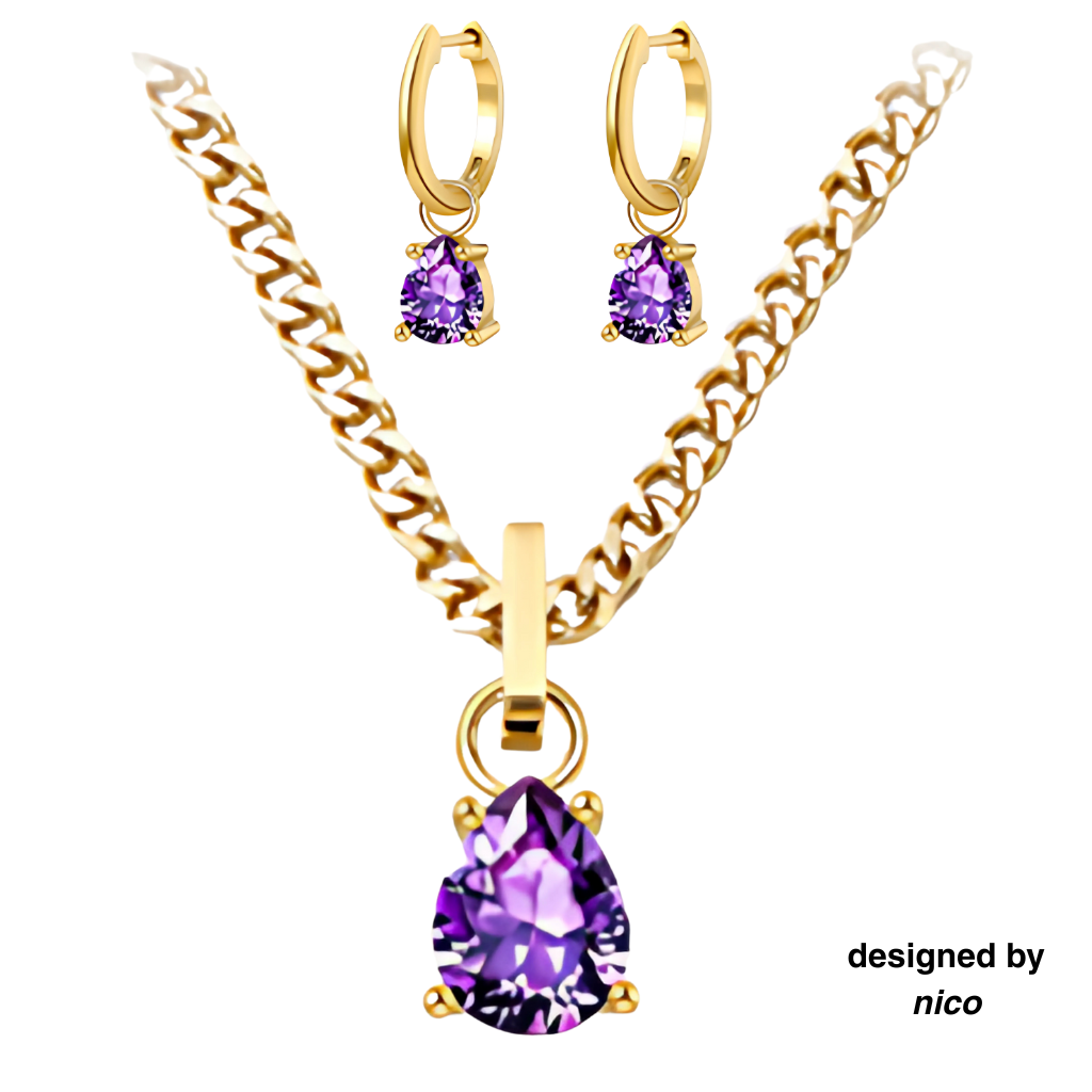 Set de joyas waterproof con cristal púrpura intenso - diseño exclusivo de Nico