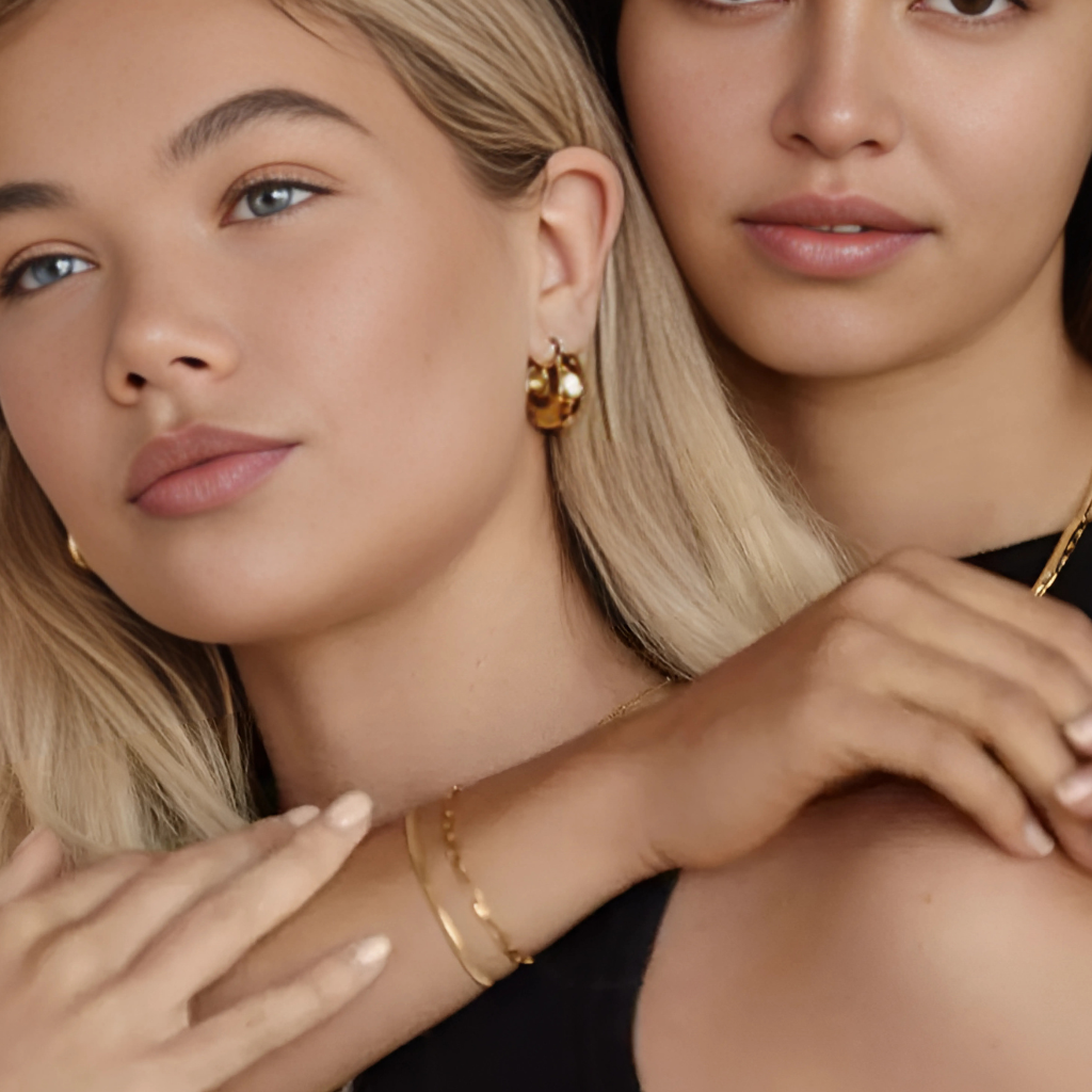 Hechas con acero quirúrgico de alta calidad, nuestras joyas están recubiertas con oro de 18k mediante un moderno proceso PVD (Physical Vapor Deposition) que garantiza un acabado duradero, respetuoso con el medio ambiente y diez veces más grueso que el chapado tradicional.