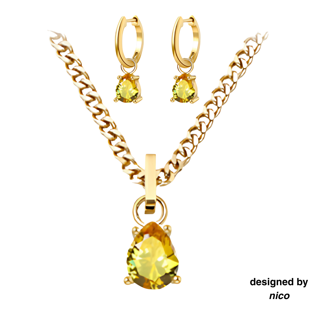 Set de joyas waterproof con cristal en tono oro miel – diseño exclusivo de Nico