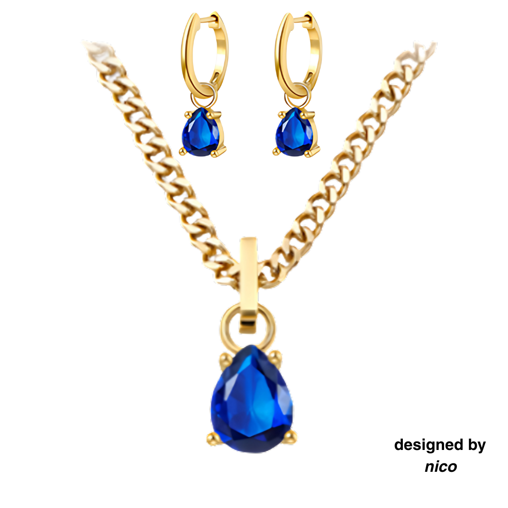 Set de joyas waterproof con cristal azul zafiro - diseño exclusivo de Nico