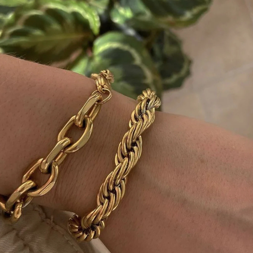 Nuestras joyas están hechas de acero quirúrgico altamente resistente y cuentan con un recubrimiento 10 veces más fuerte, con un bañado oro de 18k PVD.