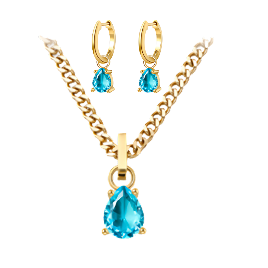 Set de joyas waterproof con cristal azul cielo – diseño exclusivo de Nico