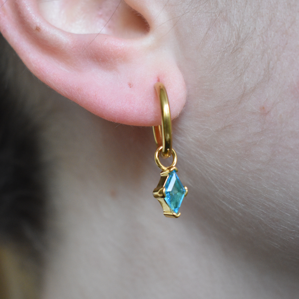 Inspirado en la frescura del mar y la claridad del cielo, este set incluye una cadena de 40 cm + 5 cm de extensión y aros de 2,5 cm, ambos bañados en oro y realzados con un cristal azul cielo en forma de gota que aporta un toque vibrante y refrescante a cualquier look.