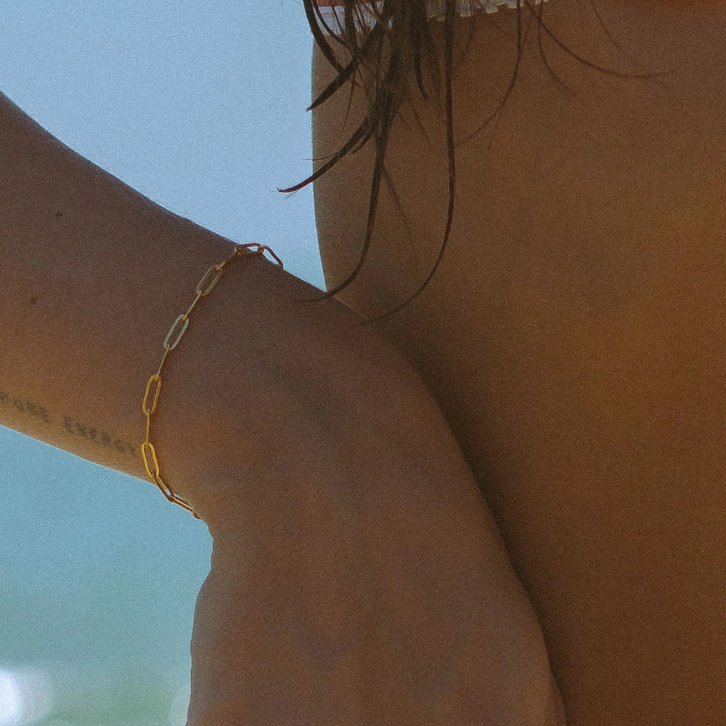 100% waterproof: úsala en la ducha, piscina, gimnasio o playa sin preocuparte. Nuestras joyas no pierden su brillo ni se desgastan con el tiempo.