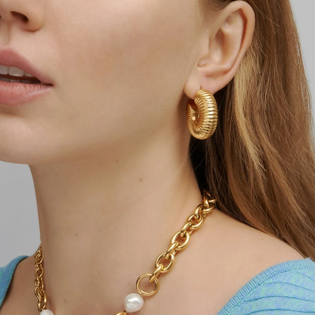Hechas con acero quirúrgico de alta calidad, nuestras joyas están recubiertas con oro de 18k mediante un moderno proceso PVD (Physical Vapor Deposition) que garantiza un acabado duradero, respetuoso con el medio ambiente y diez veces más grueso que el chapado tradicional.